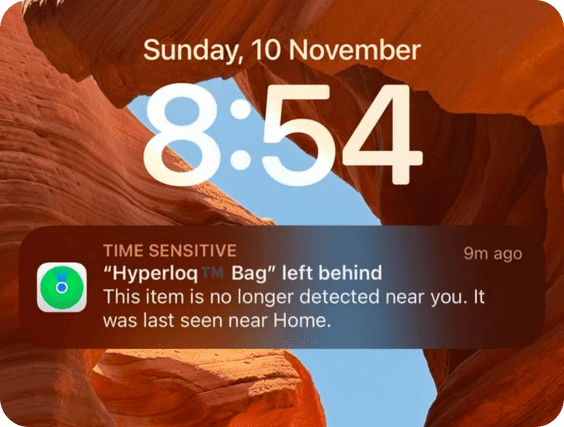 Μείνετε εντός εμβέλειας! Το έξυπνο Hyperloq™ και το τηλέφωνό σας θα σας ειδοποιήσουν ταυτόχρονα εάν χάσουν τη σύνδεση, συμπληρωματικά με την προβολή χάρτη μπορείτε να εντοπίσετε τη τελευταία γνωστή τοποθεσία.